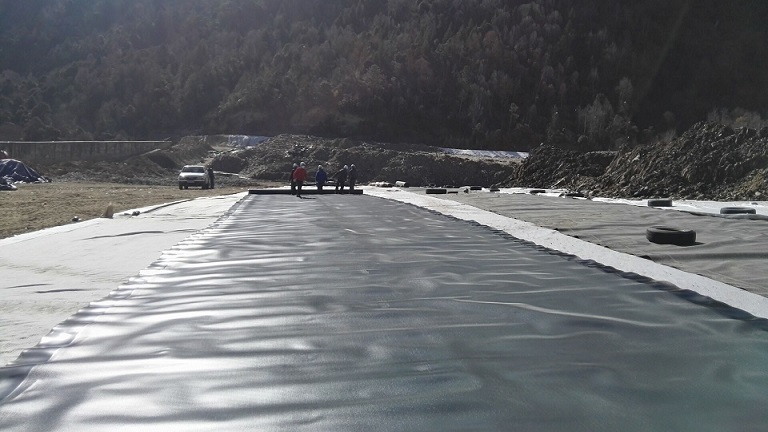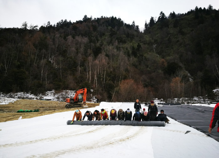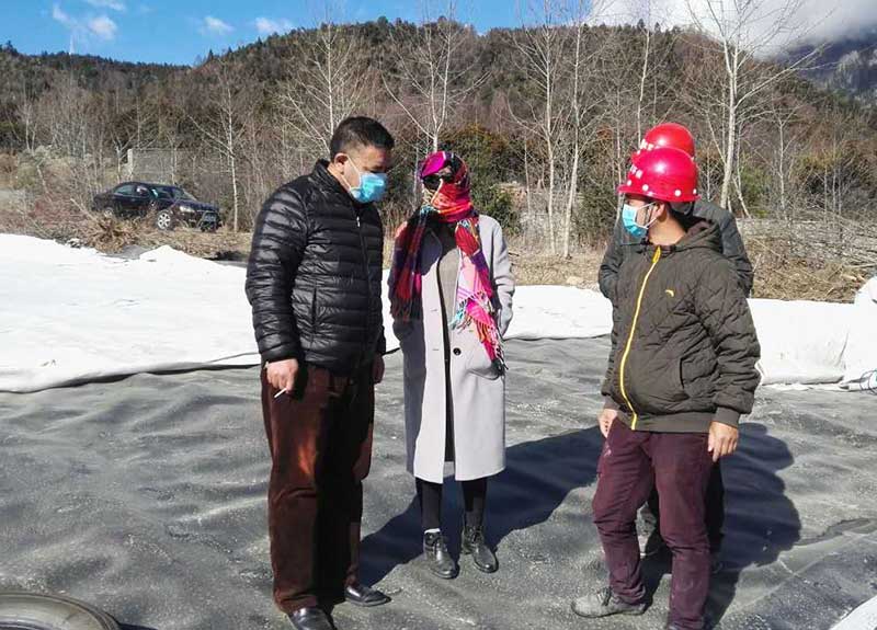 林芝市市政局副局長亞宏來工地查看土工膜鋪設焊接