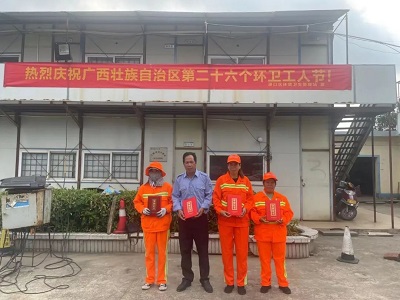 10月26日是廣西壯族自治區(qū)第26屆環(huán)衛(wèi)工人節(jié),國(guó)策環(huán)保防城港分公司唐輝、胡錫英、黃愛英、禤立艷、廖艷萍五名員工榮獲防城港城市管理監(jiān)督局“2022年環(huán)衛(wèi)先進(jìn)工作者”。防城港市委副書記、市長(zhǎng)黃江親自為他們頒發(fā)榮譽(yù)證書,并對(duì)他們?yōu)榉莱歉凼兴龀龅呢暙I(xiàn)給予了肯定及鼓勵(lì)。